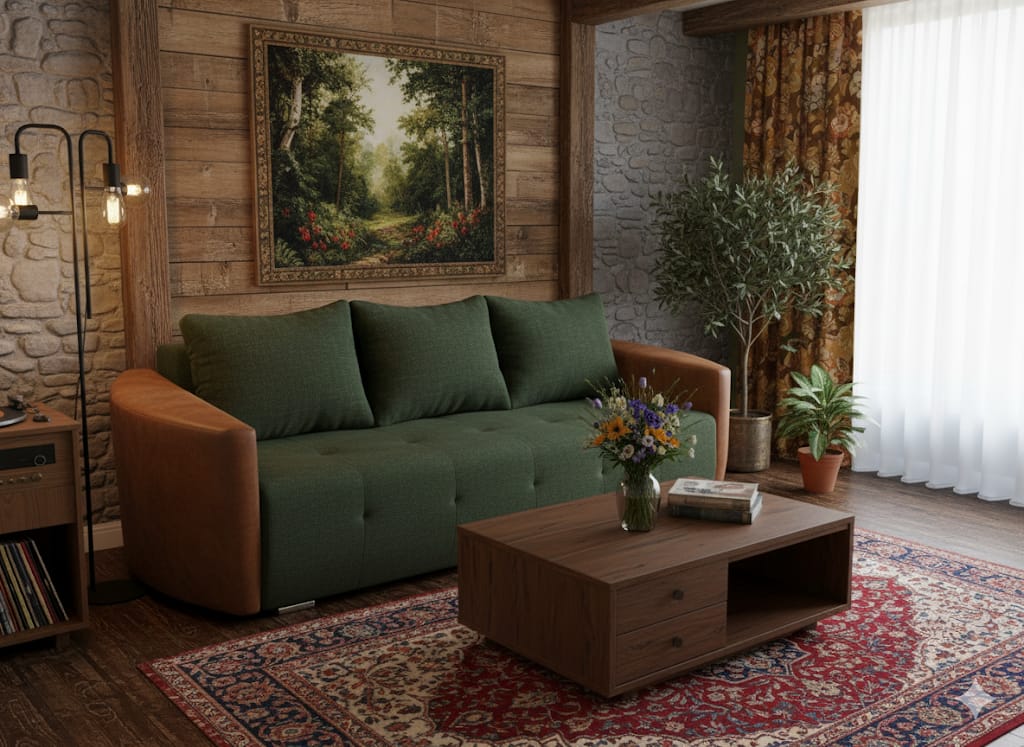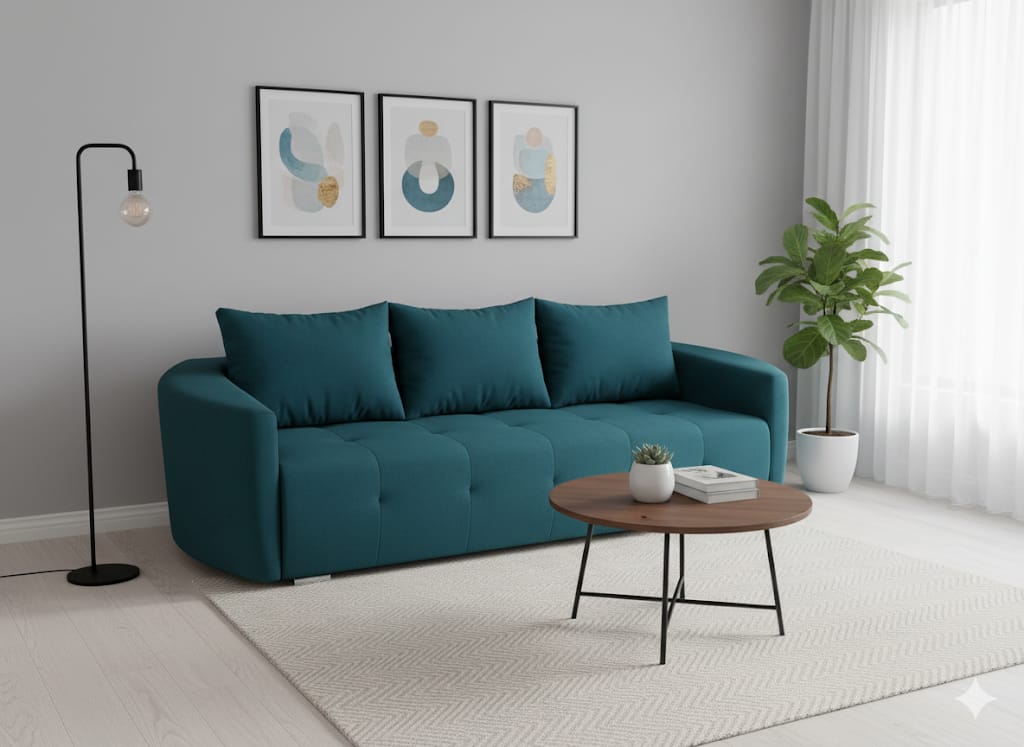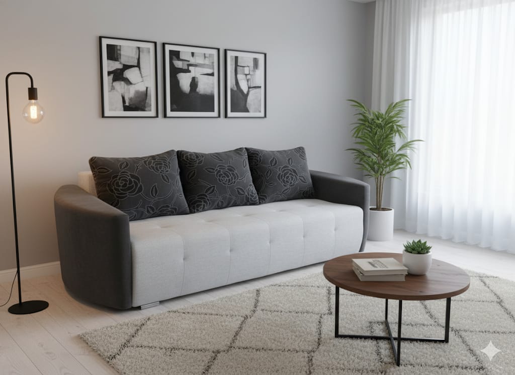 - Utilizare Versatilă: Această canapea satisface atât nevoile de relaxare, cât și cele de dormit, având capacitatea de a se transforma ușor într-un pat.